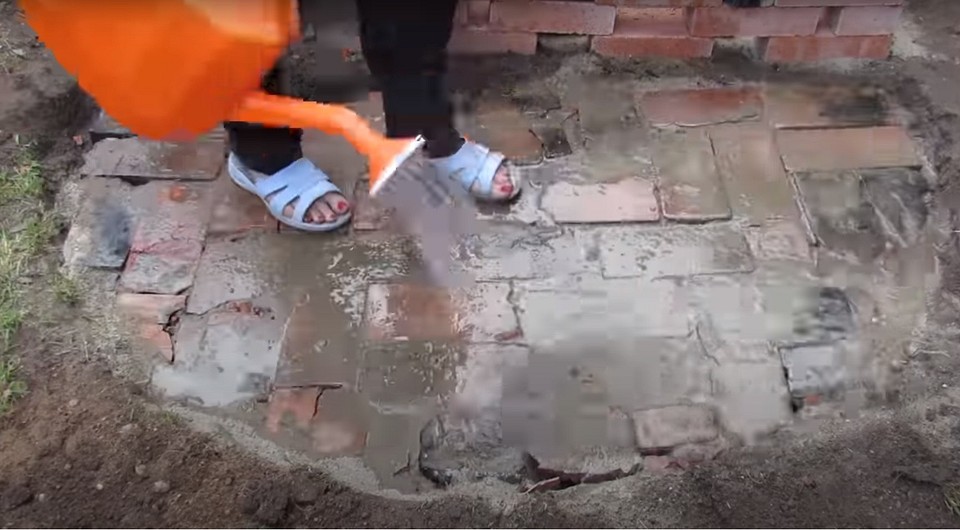 - Обильно пролейте тропинку водой.