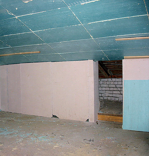 Мансарда соседствует со смежным чердачным помещением лишь с одной стороны, а три стороны ограждены кирпичными стенами (64