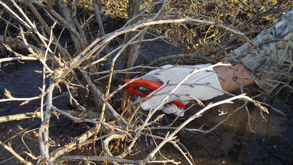 - Вырежьте излишнюю молодую тонкую поросль. Убирайте ее так, чтобы не осталось пеньков.