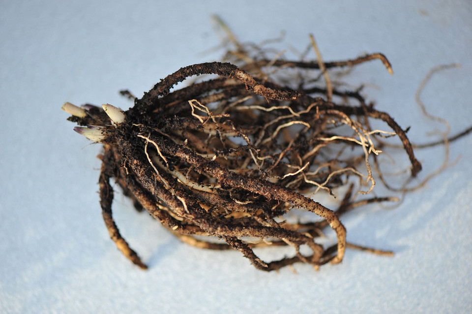 Подготовьте острый нож: промойте и продезинфицируйте его. Если ножа под рукой нет, его можно заменить лопатой. Осмотрите промытые корни и найдите на них почки. Разрежьте корневище так, чтобы на каждой деленке было не меньше двух-трех таких почек (а лучше если их будет 3-5). Также надо разделить корешки: желательно распутывать их руками, однако если это не представляется возможным, допустимо разрезать корневую систему (но надо понимать, что это дополнительный стресс для растения, который может ухудшить его приживаемость и замедлить рост). Все срезы надо присыпать золой или обработать фунгицидом, чтобы предотвратить инфицирование и загнивание.