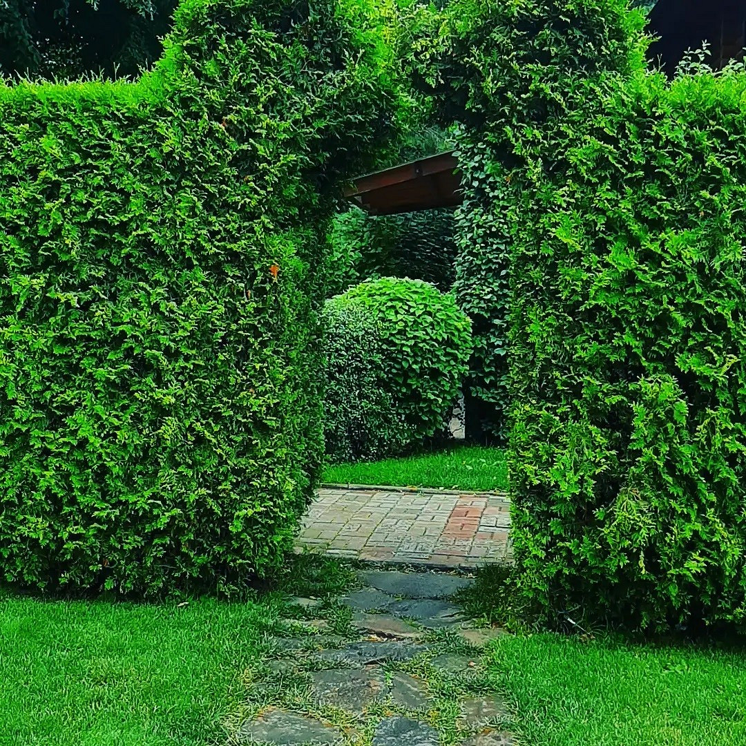 Изгородь можно сделать из самшита, можжевельника, тиса (осторожно, он ядовитый), сирени, гортензии. Из огородных культур подойдет кукуруза, но ее придется высаживать каждый год.
