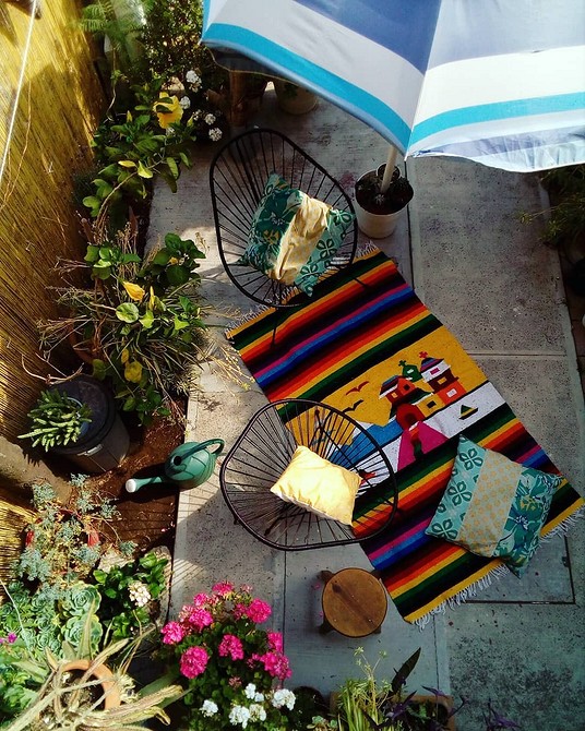 8 Пара соток с местом для чаепития и пестрым текстилем