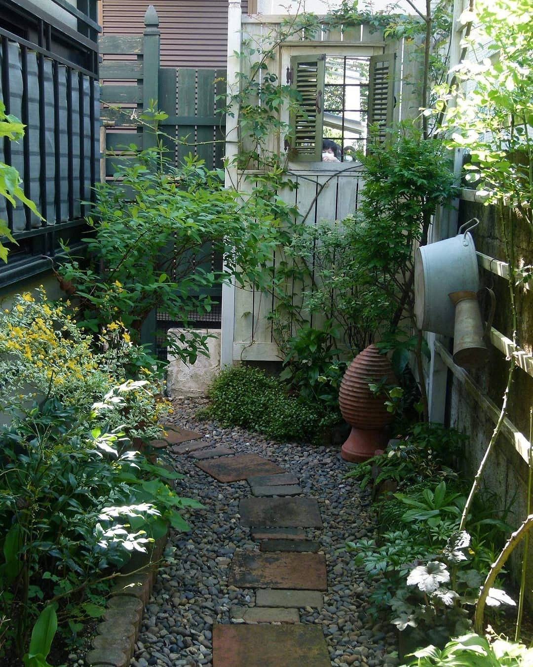 Уникальность садика в его декоративном наполнении — детали здесь играют главную роль. Предметы из прошлого будто бы переносят на несколько десятков лет назад. На некоторых облупилась краска, другие сохранились идеально, но все они создают невероятный ностальгический ретроландшафт. Растения подобраны простые, без пестрого цветения или ярких крупных листьев.