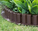 Пластмассовую ленту вкапывают до середины или на треть по краю клумбы. Ее большой плюс в том, что она гибкая и может обрамлять конструкции любой формы. Заборчики из пластика чаще продают секциями, их устанавливают, вкапывая колышки в почвосмесь.
