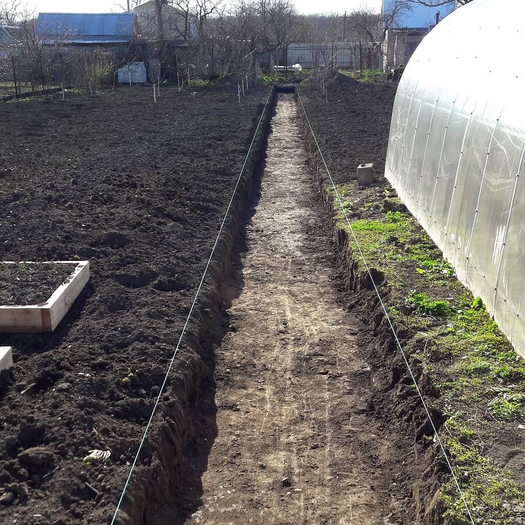 - Дно выкопанной траншеи уплотняют. Можно сделать это трамбовкой или несколько раз пролить поверхность водой, немного утрамбовать и дать высохнуть.