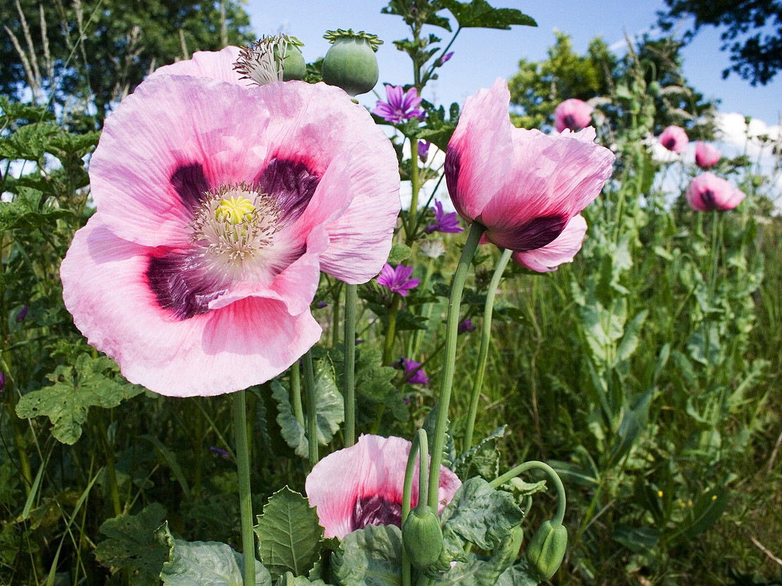 Это не так давно выведенный сорт садового мака с цветами в два-три раза крупнее, чем у диких сортов. Цветы ярко-красного, розового, белого, оранжевого цвета, можно найти двуцветные варианты. Также как и дикий мак, неприхотлив и растет практически на любой почве, любит солнечные участки.