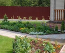 По таким же принципам формируют узкие цветники вдоль заборов, стен домов.
