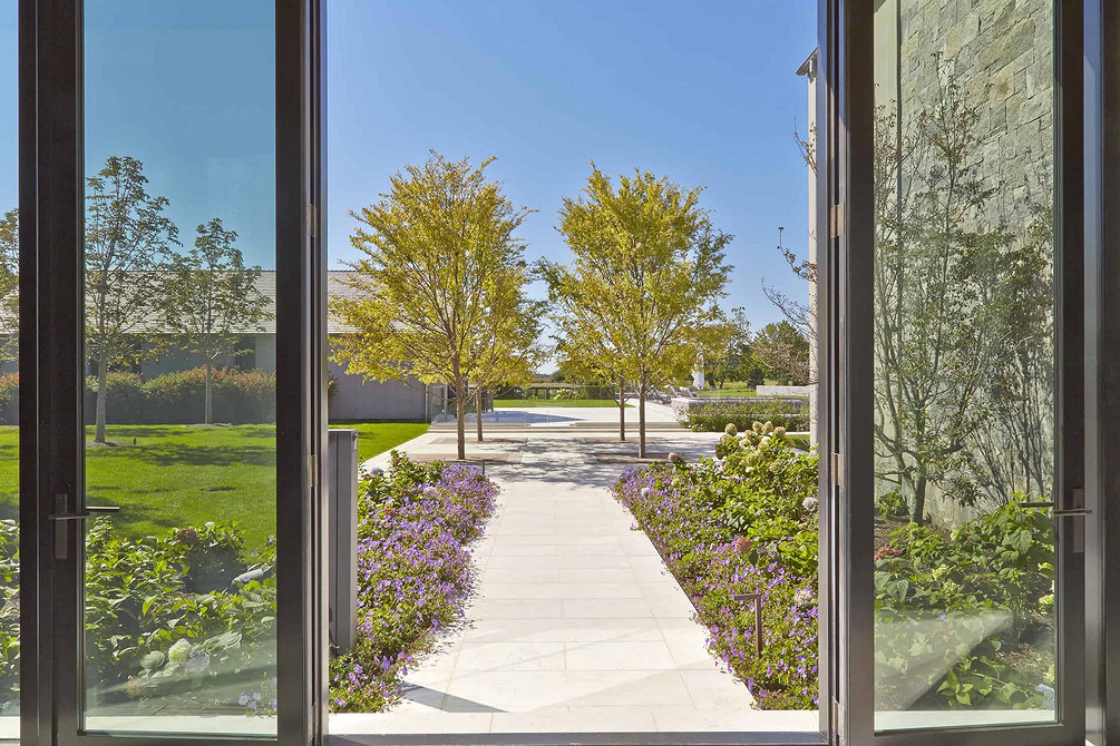 В этом цветнике сочетаются бутоны розовых, лиловых, сиреневых оттенков, за счет чего он выглядит нежным и романтичным. Растения распускаются по очереди — от пионов до астр — но общая цветовая гамма не меняется весь сезон.