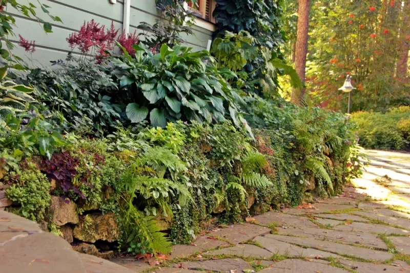 Если не хотите возиться с пересадкой и не любите слишком пестрые клумбы, используйте для их создания декоративные растения, славящиеся листьями, а не бутонами. Хосты, папоротники, злаки будут радовать глаз с весны до осени. А можжевельники и другие хвойные останутся зелеными, даже когда выпадет снег.