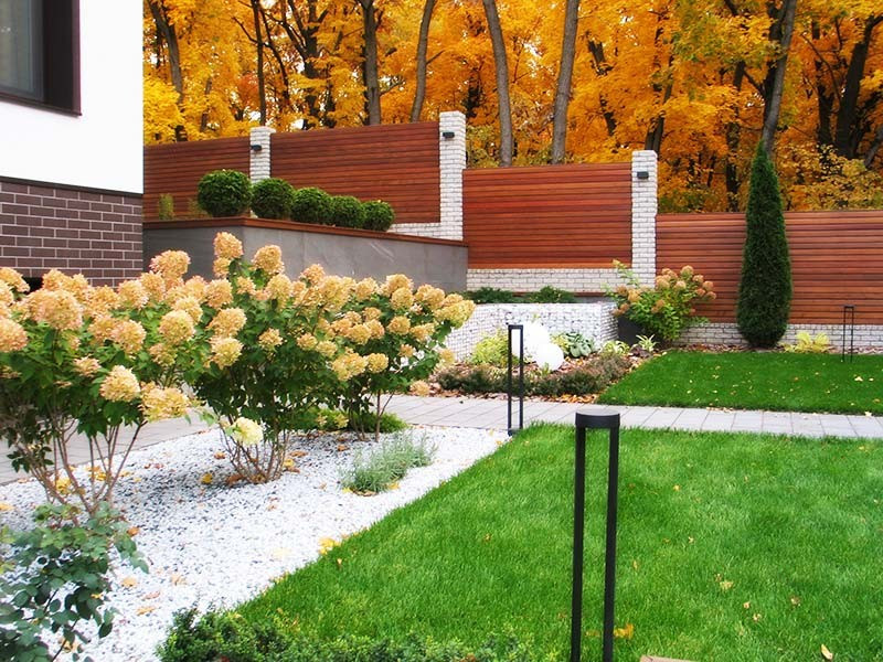 - одним-двумя кустами гортензии, пионов;