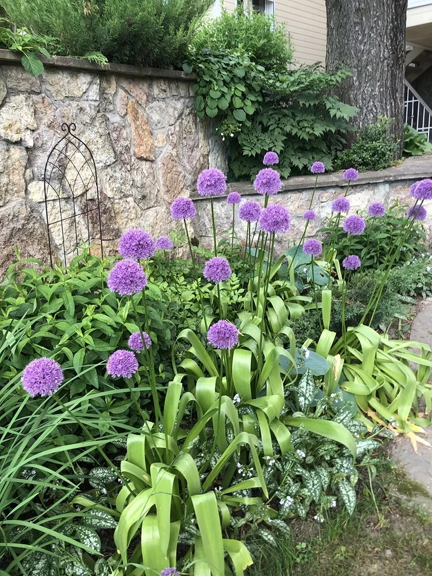 Места на даче хватит только на супер маленький прямоугольный цветник? Используйте те же приемы, просто сократите количество растений. Высадите в центр пышный пион, декоративный лук, веронику, окружите саженцы невысокими папоротниками и хостами. В середине лета сможете наслаждаться яркими красками, остальное время — пышной зеленью разных оттенков.