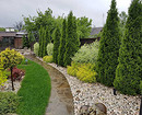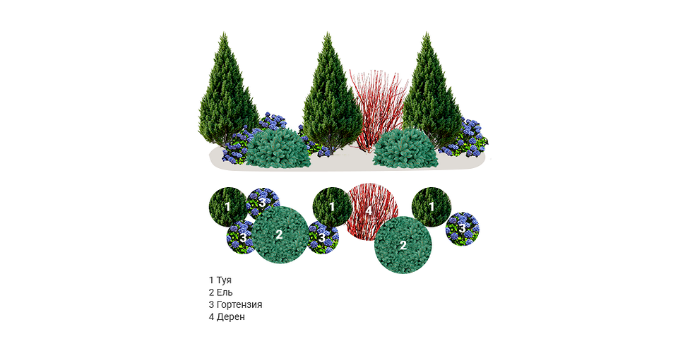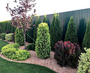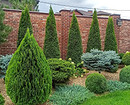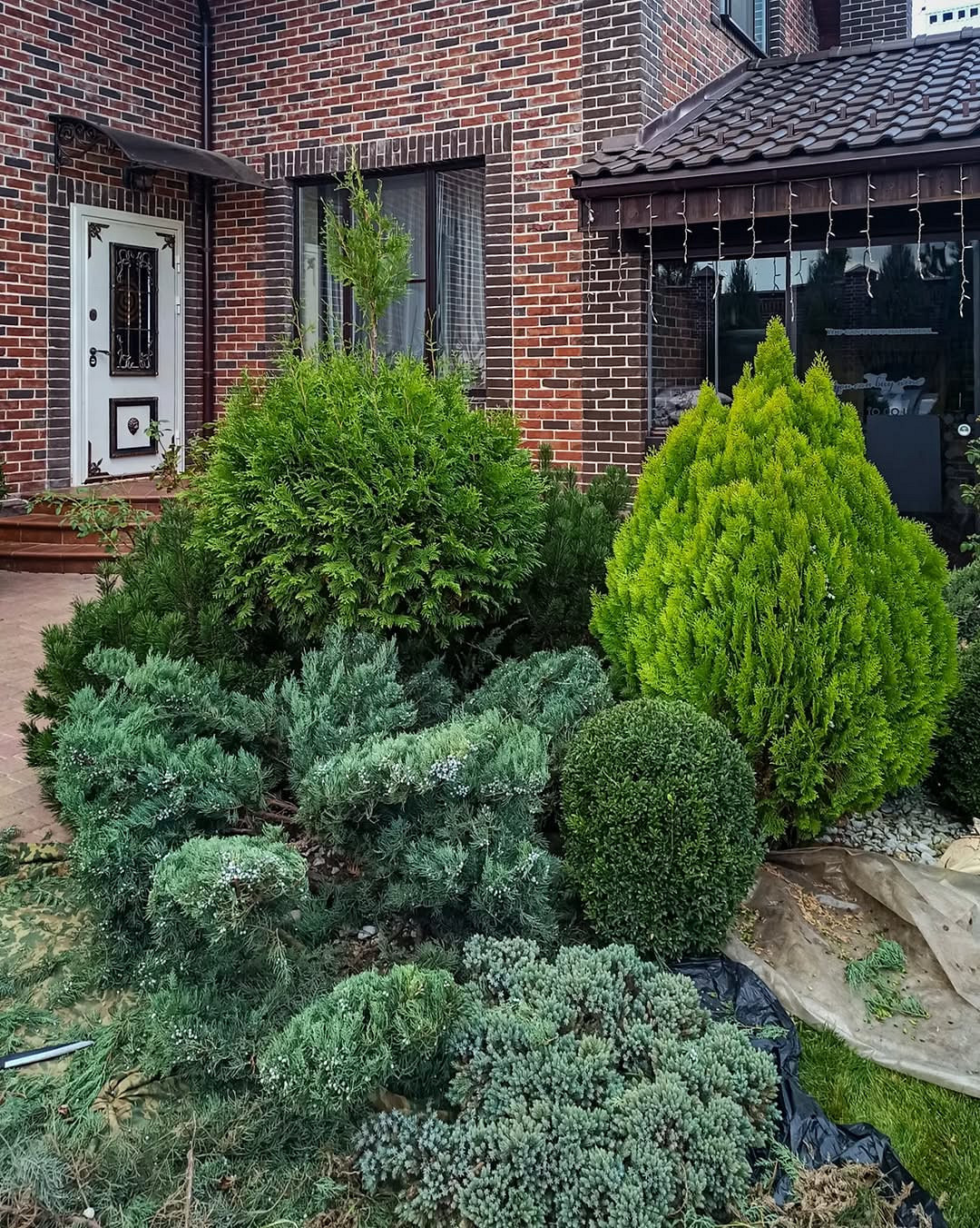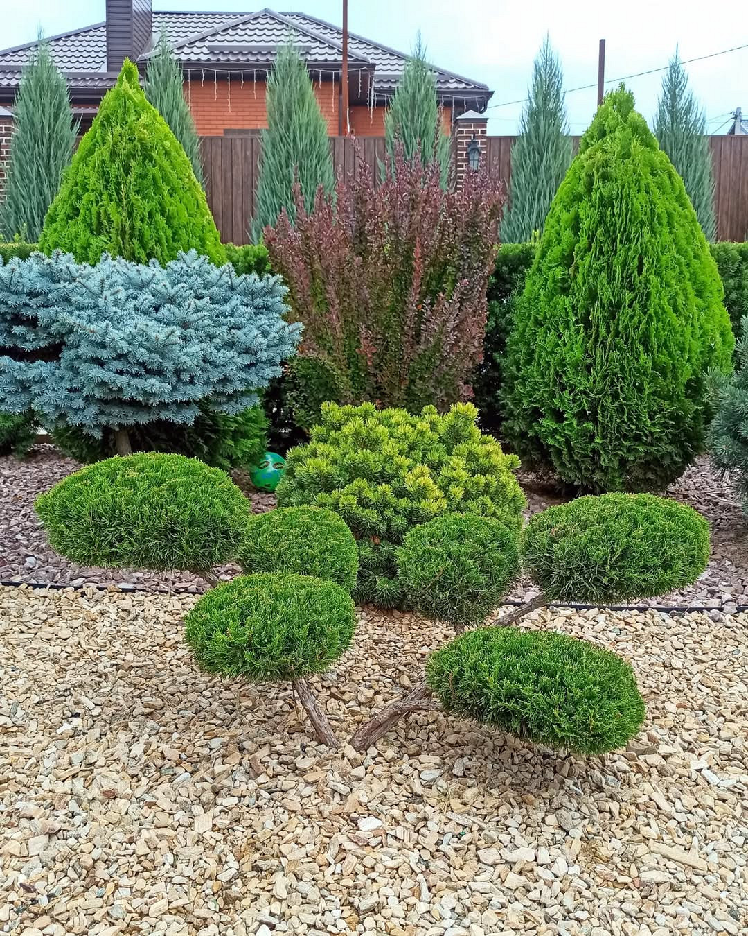 Если полоса из одинаковых растений кажется слишком строгой и банальной, можно попробовать чередовать сорта, подбирая варианты с разной высотой или оттенком хвои.