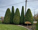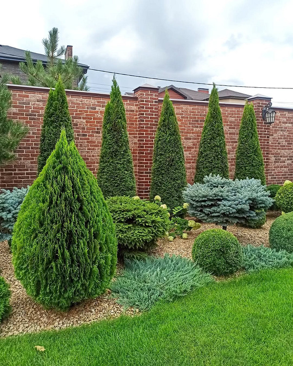 Благодаря однотипной форме хвойные хорошо смотрятся посаженными в линию.