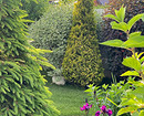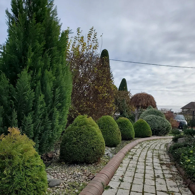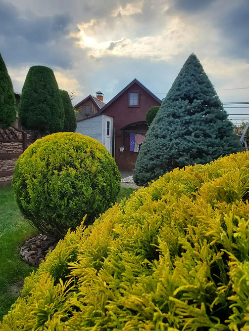 - Хвойные — то, что сочетается с туями наилучшим образом. В компании с пихтами, елями и можжевельником это дерево выглядит максимально органично.
