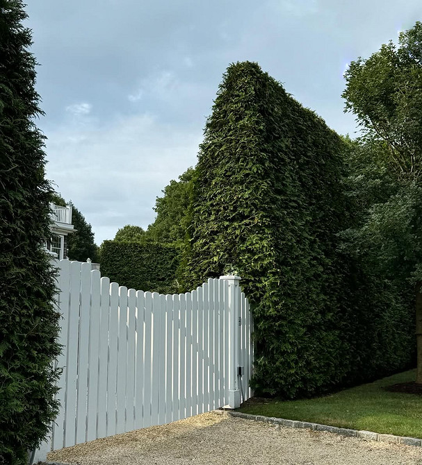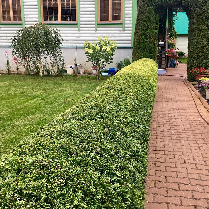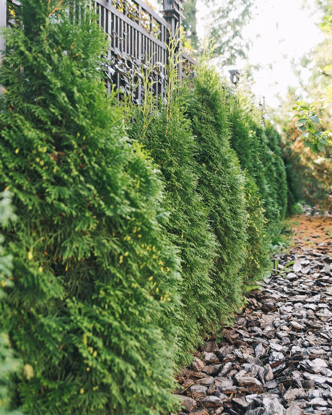 При такой плотной посадке получается красивый естественный забор, который не только укроет от взглядов соседей, но и оградит от пыли и шума, если дом расположен недалеко от дороги.