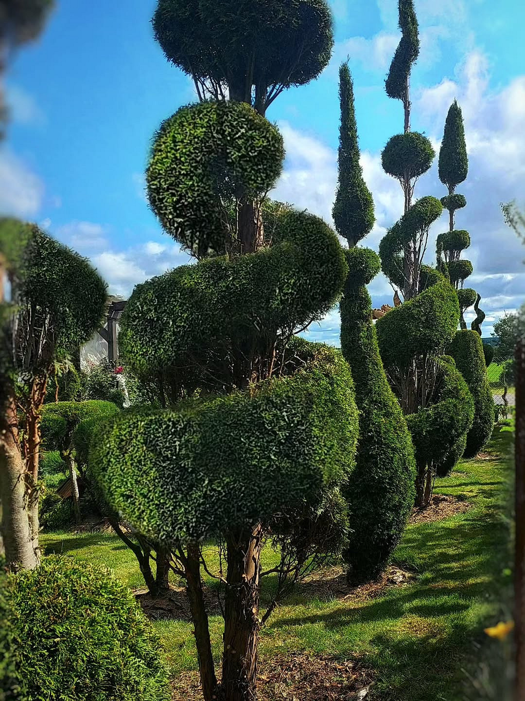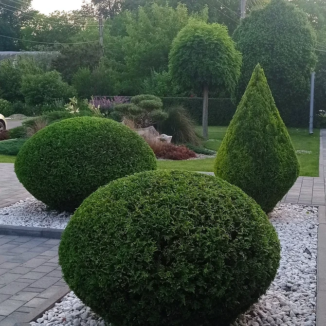 Чаще всего делают шар, куб, пирамиду, конус, спираль, несколько сфер или полусфер (техника ниваки) и т.д. Эстетика такого решения неоспорима — всего одно-два растения необычного вида способны преобразить сад, сделав его элегантным и утонченным.