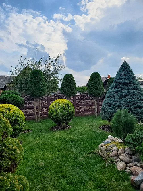 - Шаровидные сорта выглядят аккуратно даже без регулярной обрезки, благодаря чему территория всегда имеет ухоженный вид.