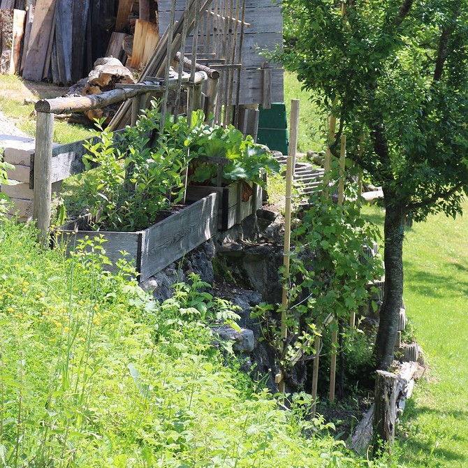 - Альпийскую горку — владельцам ровных участков приходится формировать под нее искусственный холм, а в данном случае он уже есть. Остается только высадить подходящие растения (это может быть и зелень, и яркие красивые цветы) и украсить альпинарий камнями. Это популярный естественный декор, который украсит любой дачный участок.