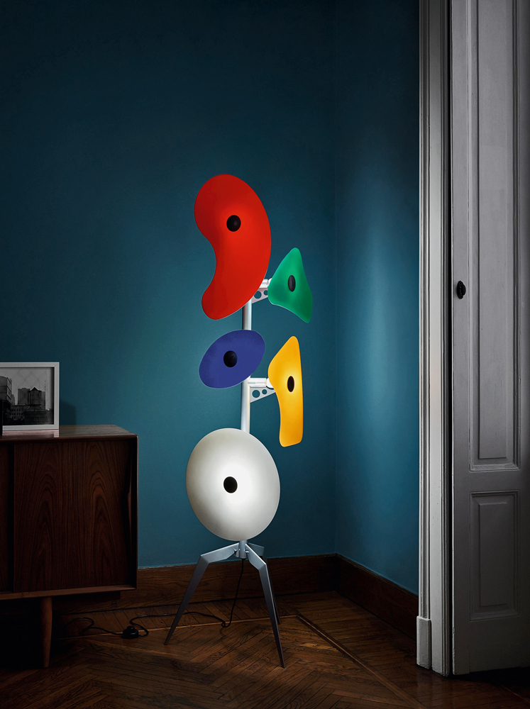 Торшер Orbital c плафонами из стекла с шёлкотрафаретной печатью (48 500 руб.). Фото: Foscarini