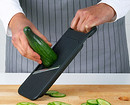 Нарезать тонкие ломтики из овощей с помощью такого гаджета намного проще, чем ножом на обычной доске. Нашинковать дольками можно лук, огурец, кабачок и другие твердые продукты. Также овощерезка позволяет регулировать толщину нарезки: у нее есть три режима, достаточно только повернуть регулятор. Чтобы защитить руки от порезов, в комплекте идет специальный защитный держатель.