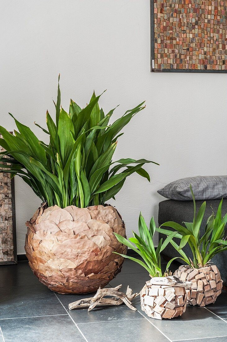 Дерево идеально подойдет для создания эстетичного напольного кашпо для цветов своими руками. Его можно поставить как дома, так и на балконе или в саду.
