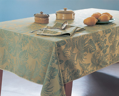 TRADI LINGE (Франция) предлагает 2 варианта текстиля для сервировки стола- официальный (классический) и домашний. Классическая серия- это хлопчатобумажные дамастовые скатерти, однотонные или с тканым рисунком в виде цветов, листочков ит.д. Домашняя серия- изделия ярких расцветок из хлопка или хлопка с полиэстром, с цветочками, бабочками, овощами и фруктами и разными смешными картинками, выполненными методом печати. Такие скатерти лучше использовать в абсолютно домашней атмосфере, чтобы ежедневный обед или ужин был приятным и радовал членов семьи и близких друзей. Для неофициальных приемов можно использовать более строгую серию, включающую в себя клетчатые или цветочные узоры. Все скатерти обшиты понизу специальной защитной лентой, на них нанесено покрытие тефлон. Стирать эти изделия очень просто. Цены на самый большой гарнитур не будут превышать $150.
