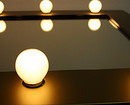 Еще один интересный ход — ретроподсветка в виде небольших ламп на внешней стороне рамы. Такой дизайн напоминает гримерку кинозвезды и добавляет пространству легкого шика.