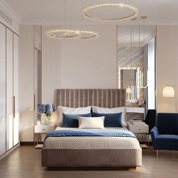 Зеркала в интерьере спальни будут уместны как навесные, так и напольные. Первыми часто украшают стену за изголовьем кровати. Вторые размещают в хорошо освещенном месте.
