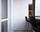 Обратите внимание на барную стойку на балконе с панорамным остеклением. Здесь нет никаких особенных правил оформления. Её размещение ничем не отличается от классического решения.