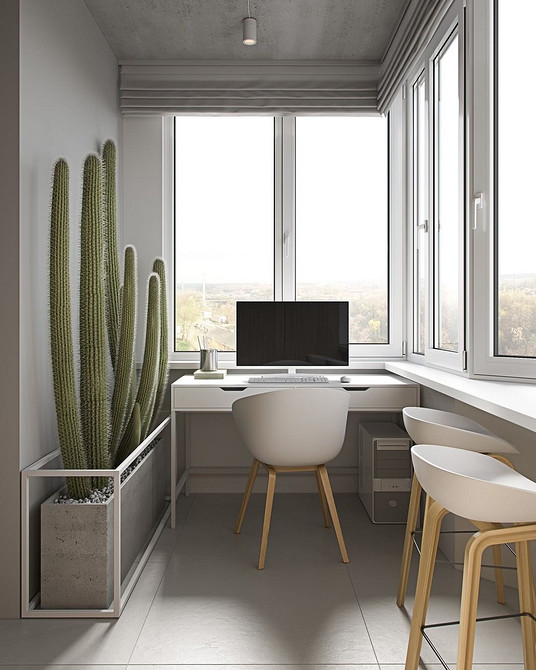 - Яркие цвета — тоже не очень хороший выбор для оформления лоджии. Сегодня актуальны припыленные оттенки, черно-белая гамма. Так что акцентов в виде яркого бара красного или голубого цвета лучше избегать.