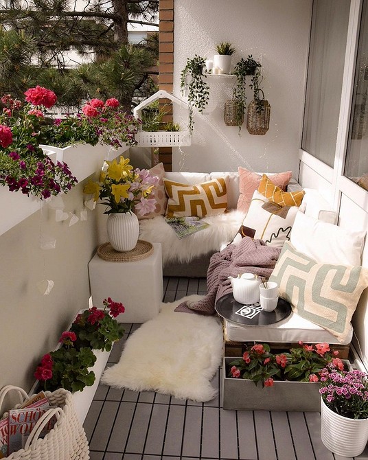 После того как вы отсортируете вещи и выбросите ненужное, стоит подумать об оставшихся предметах. То, что еще пригодится, можно оставить на балконе. Но не стоит хранить вещи на виду: так балкон опять приобретет неряшливый вид. Их можно разложить по коробкам и расставить на полке под потолком. Другой вариант — спрятать все в шкаф под подоконником или во встроенную тумбу в углу.