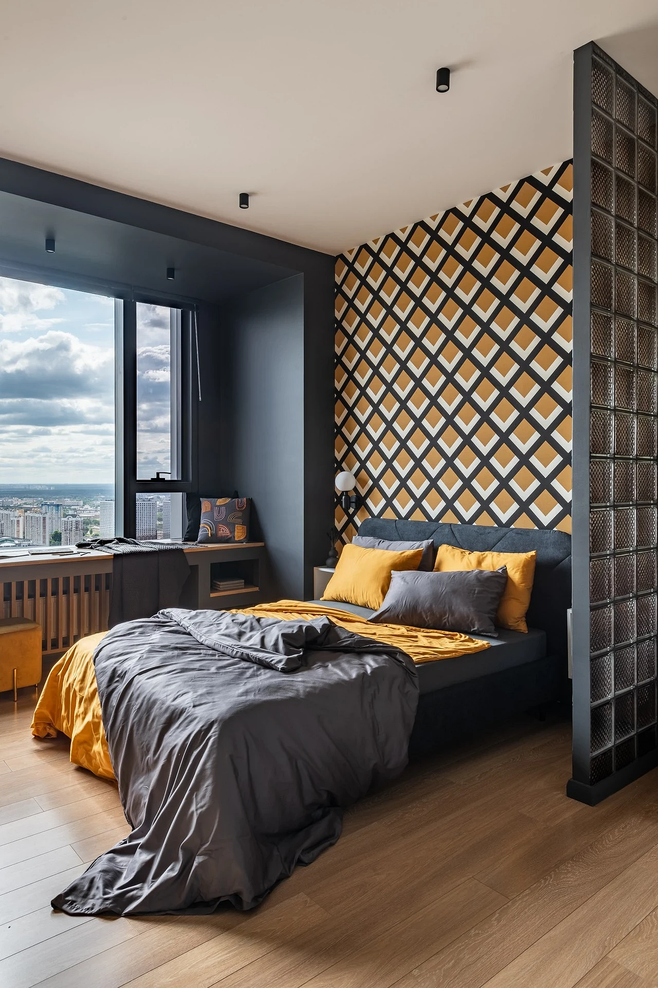 Еще один прием, который поможет создать в комнате ту или иную атмосферу, — задействовать глубокие насыщенные цвета. Но их сложно использовать в качестве основы палитры так, чтобы не перегрузить пространство. Поэтому легче уменьшить их количество, но выделить с помощью других визуальных паттернов. Например, наш взгляд сразу цепляется за узоры, орнаменты и строгие геометрические формы вроде прямых линий, треугольников и кругов.