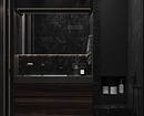 В ванной комнате можно смело экспериментировать и оформить ее как контрастно (например, совместив плитку под шоколадное дерево и классическую белую керамику), так и полностью в черно-коричневых тонах. Во втором случае важно обеспечить достаточное искусственное освещение, а также использовать зеркала и хотя бы пару глянцевых поверхностей, чтобы пространство не казалось слишком тесным и мрачным. Сантехника может быть в тон основной отделке или, наоборот, белоснежной — это создаст интересный контраст.