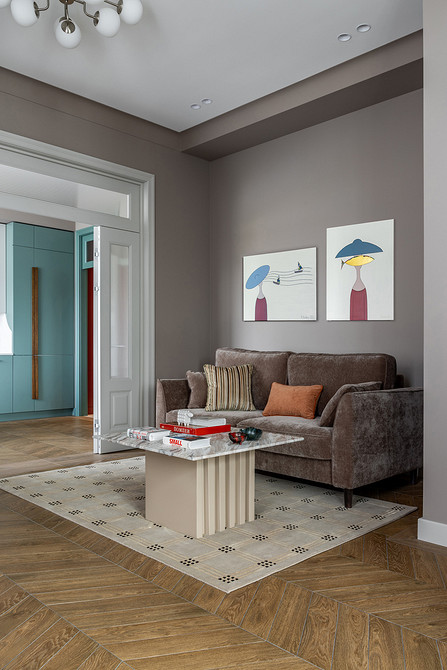 Молодая хозяйка этой квартиры попросила архитектора Кристину Квартальнову наполнить интерьер выразительными цветами, но сделать это тонко и сдержанно. Так в гостиной и на кухне появился теплый, «вкусный» оттенок трюфеля.