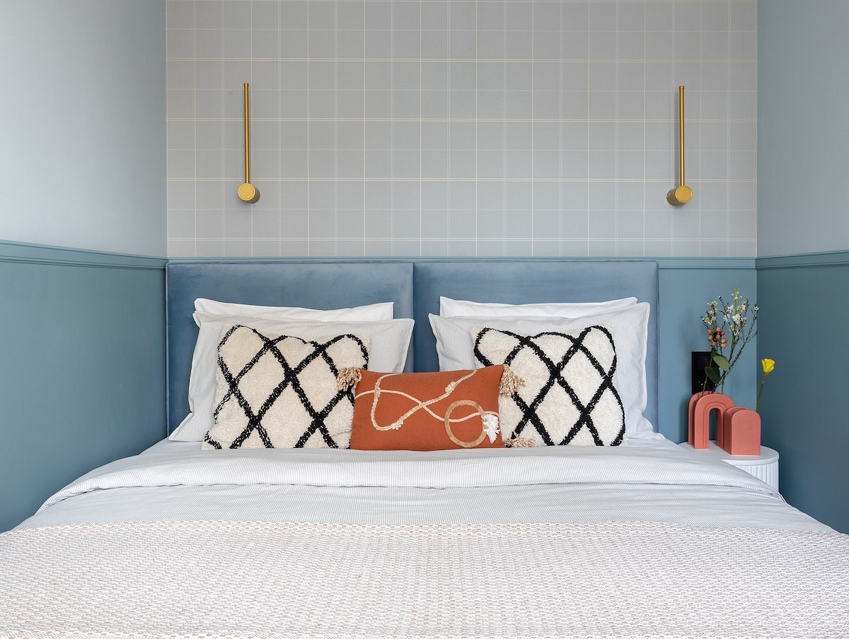 В хрущевке 1961 года, которую дизайнер Мария Тарташник готовила для сдачи в аренду студентам, нужно было визуально расширить очень узкую спальню. Помог сложный голубой цвет.