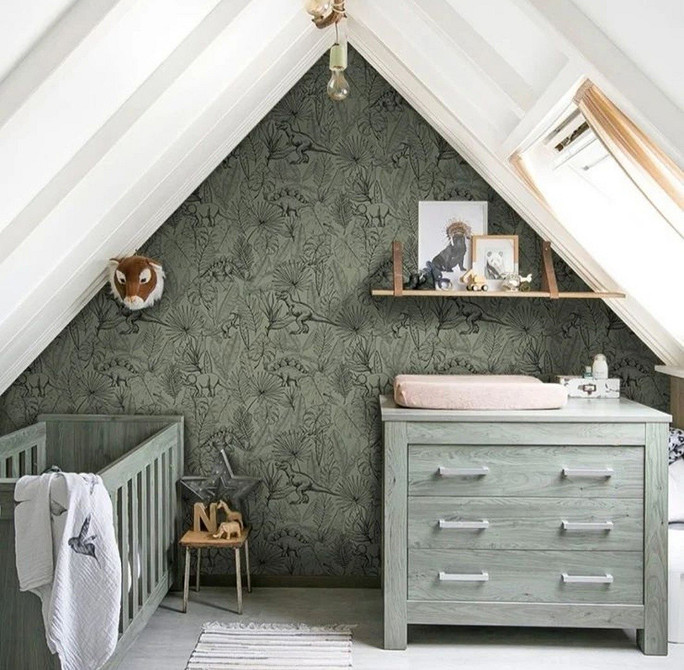 Более смелые, например, оклеить все стены обоями насыщенного оттенка. Или нейтральные, спокойные: использовать оливковый или шалфей. А может, пойти на компромисс и сделать одну акцентную стену в окружении базовых.