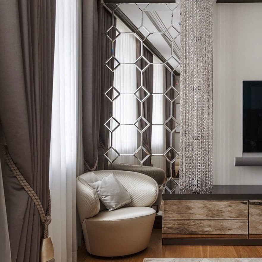 Зеркальные поверхности — проверенный помощник в деле расширения пространства. К тому же, вариантов их использования для декора стен — великое множество: