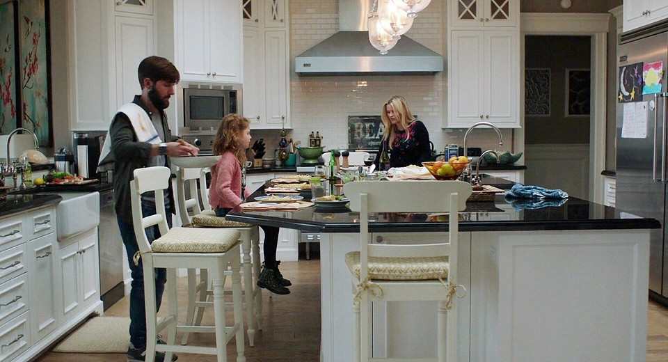 Следом идет просторный дом для большой семьи, который олицетворяет мечту о семейной гармонии. Интересный ход сценаристов — создать красивую удобную кухню, которая кажется слишком большой для героини, которая одинока в собственной семье.
