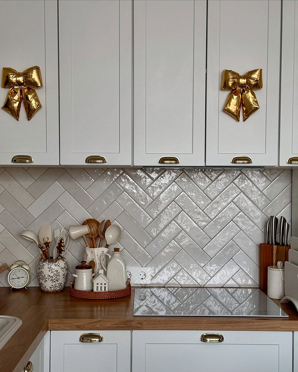 Новогодняя посуда может играть роль полноценного декора, при этом функционального. Расставьте любимые кружки на полках или продумайте повседневную сервировку с новогодними деталями. Так кухня будет напоминать о приближающемся празднике, при этом можно обойтись меньшим количеством нефункциональных декоративных предметов.