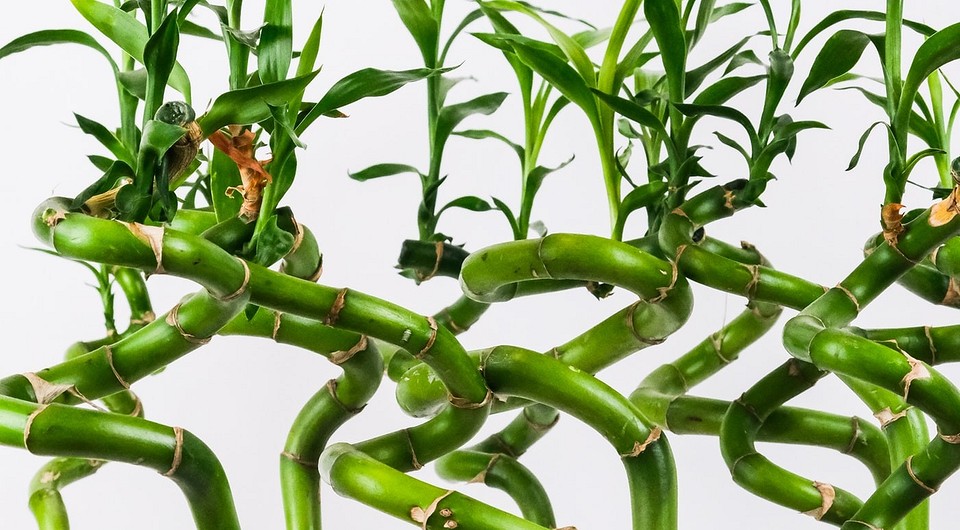 Ярко-зеленый стебель растения со спиралевидной верхушкой чем-то напоминает бамбук. Выращивать его можно какое-то время просто в вазе: главное — следить за уровнем воды, он не должен подниматься над корнями выше 2 см. Уход за драценой несложный, оно не любит ярких солнечных лучей и хорошо растет при рассеянном освещении.