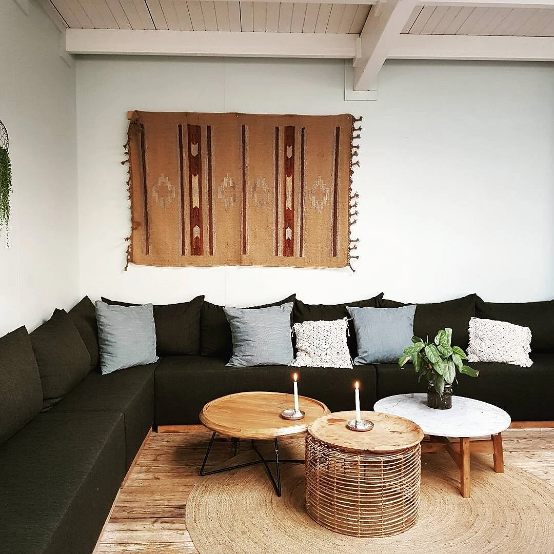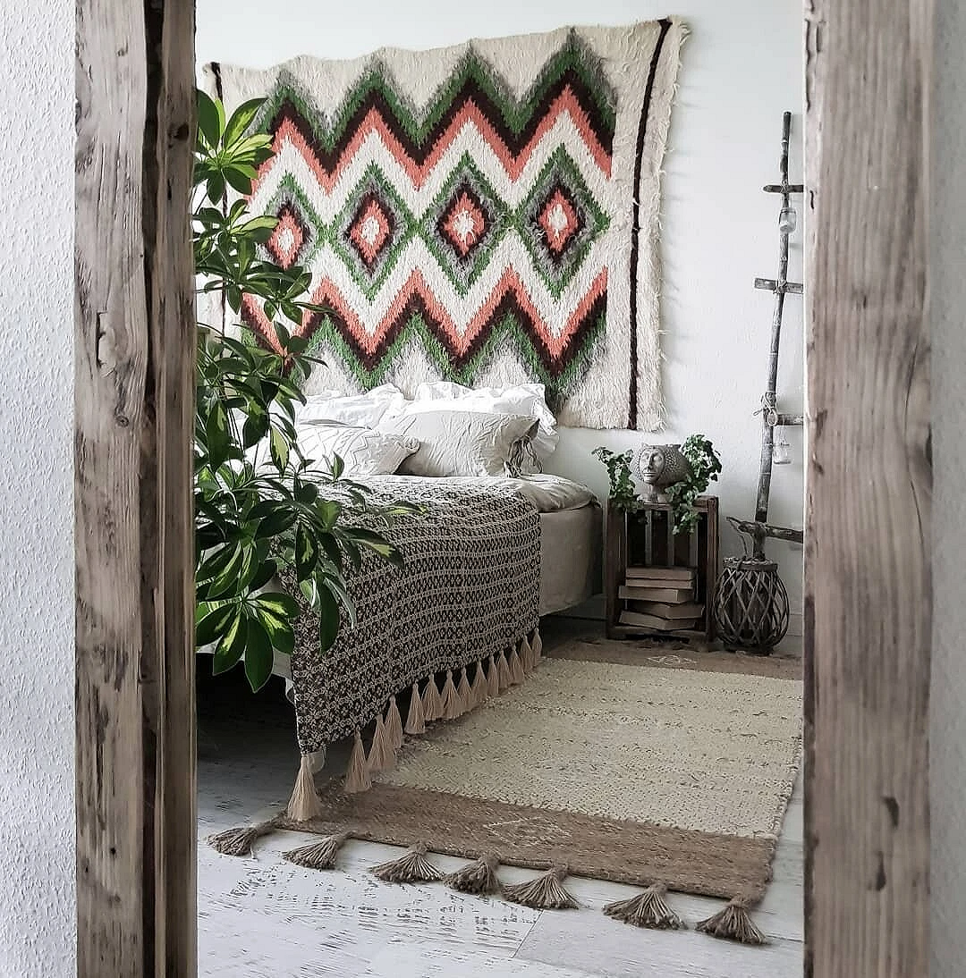 Пожалуй, этнический стиль (а особенно восточный) — самое подходящее направление для использования любых ковров: ярких, с узорами, с росписью, сотканных вручную. Чтобы подчеркнуть этническую направленность интерьера, обратите внимание на изделия с национальным узором той страны, стиль которой взят за основу. Также можно повесить на стену сразу несколько изделий.