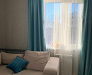 Гостиная идеально подходит для экспериментов с цветом, для этого помещения подойдут даже яркие варианты аквамаринового. Это могут быть плотные бархатные портьеры, легкий цветной тюль, атласные портьеры. Или, например, гардины с рисунком другого, контрастного цвета.