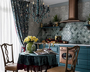 Оттенки зеленого и голубого на кухне рекомендуют использовать тем, кто хочет контролировать аппетит. Считается, что они его снижают (в отличие от красного и оранжевого). Но даже если такой цели не стоит, текстиль красивого сложного оттенка украсит помещение, добавит ему яркости. Сочетайте такие шторы с серой или бежевой отделкой, хорошо будет смотреться белая или деревянная мебель. Поддержать цвет занавесок можно через декор или, например, обивку обеденных стульев.