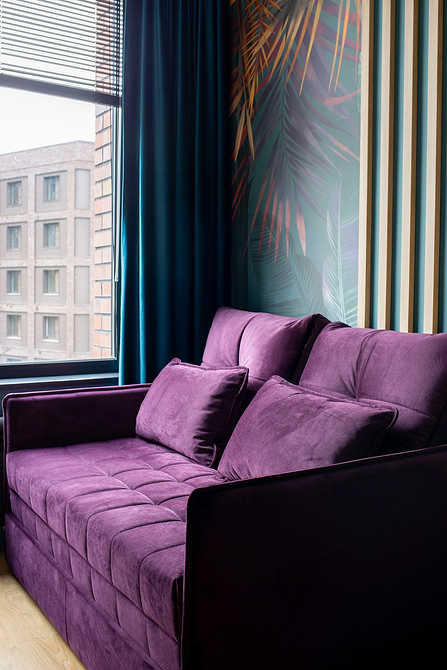 Избегайте слишком ярких оттенков зелено-голубого, выбирайте для штор натуральные или смесовые ткани с приятной фактурой. Продумайте затемнение, если основные занавески не полностью блокируют солнце.