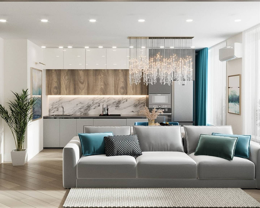В обычном же интерьере он прекрасно чувствует себя в роли базы. Но без контрастных элементов может выглядеть скучно, поэтому аквамариновые шторы станут отличным акцентом в нейтральном оформлении. Яркость оттенка может быть любой: от насыщенного океанического до приглушенного серо-бирюзового, в тон основной палитре.