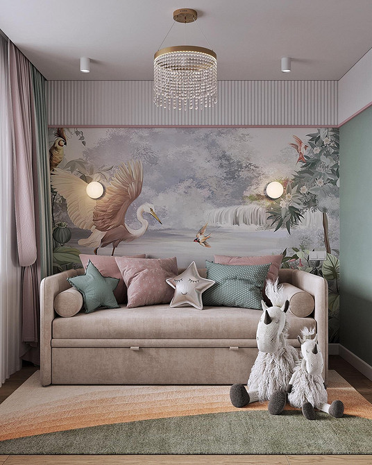 Бирюзовый часто используют и в детской комнате, так как для ребенка важно проводить время в окружении позитивных цветов. Но при этом нельзя переборщить с яркостью — детская психика подвижна, если в комнате будет слишком много пестроты и насыщенных оттенков, это будет влиять на концентрацию, может вызвать проблемы со сном.