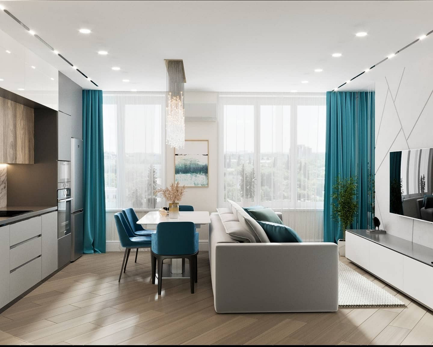 Бирюзовые шторы в интерьере: как использовать и с чем сочетать (86 фото)