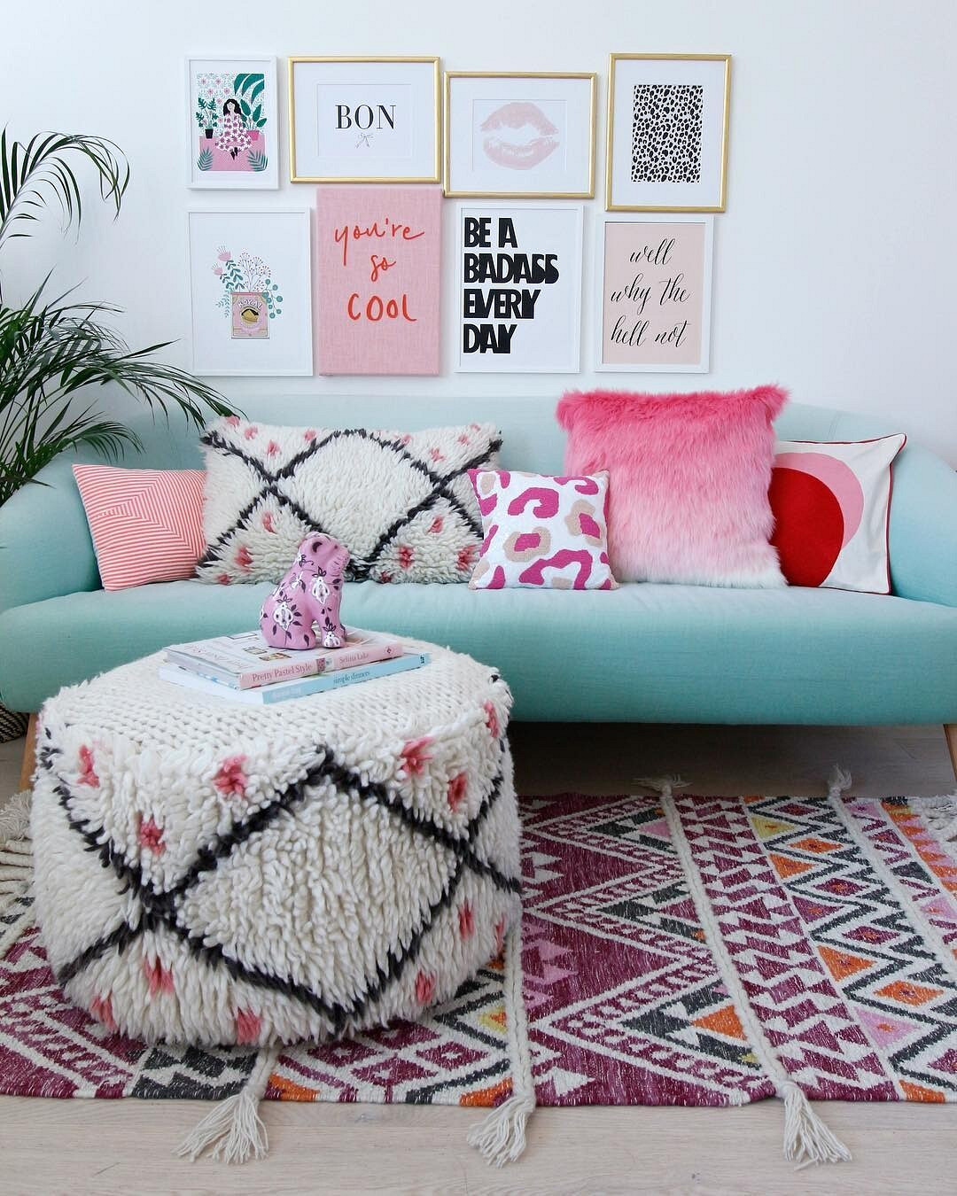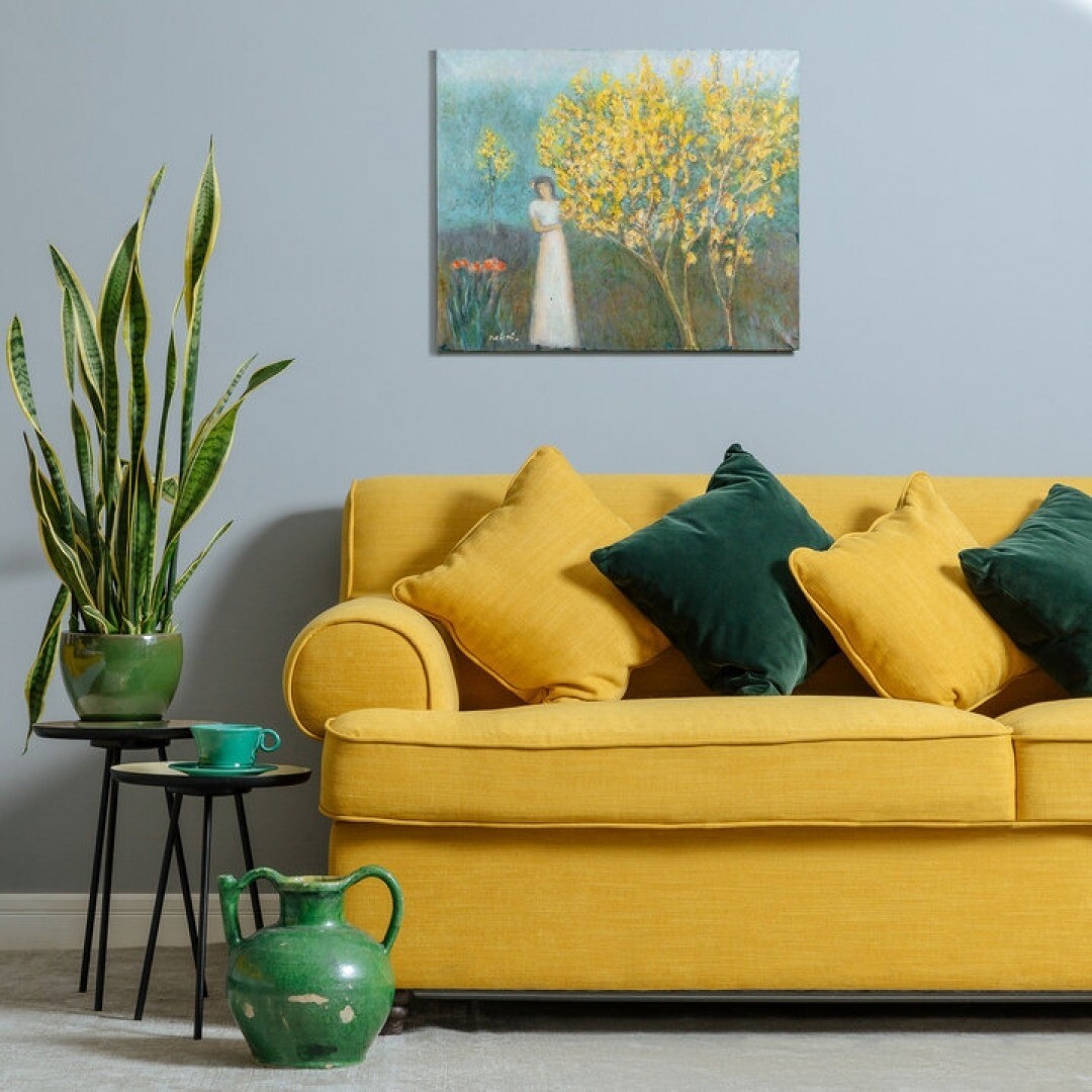 Найдите произведение, которое понравится исполнением и цветом. Это станет отправной точкой для декорирования интерьера. Добавьте текстиль в оттенках, которые использованы на картине, постере или репродукции. Это могут быть декоративные подушки или покрывало, чехлы или обивка мебели, полоса на шторах или плед на диване. Выберите ковер в одном из тонов арт-объекта, но в более сочной или наоборот пастельной вариации. Используйте любимый предмет искусства, который есть в доме, и впишите его гармонично в пространство.