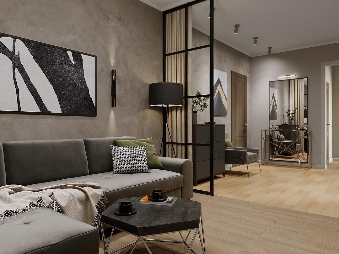 Если помещение маленькое, яркие краски могут визуально сделать его еще меньше. Использовать только светлые цвета — скучно, поэтому примените природные оттенки. Успокаивающие нейтральные краски сделают комнату мягкой и уютной. Для больших поверхностей используйте светлые краски: бежевый, светло-серый, оливковый. Введите осторожно контрастные темные тона в контуры предметов мебели и декора: в деревянный корпус мебели, ножки стола, металлическое основание стеллажа, рамы картин. Используйте текстуры, набивные узоры, полоски, горох, геометрию, интересное плетение в текстиле, чтобы разнообразить интерьер. Используйте разные по ощущениям материалы в одном цвете или оттенках: кожу, бархат, текстурное дерево, металл, мех. Цвет объединит использованную фактуру и оставит тактильное разнообразие.
