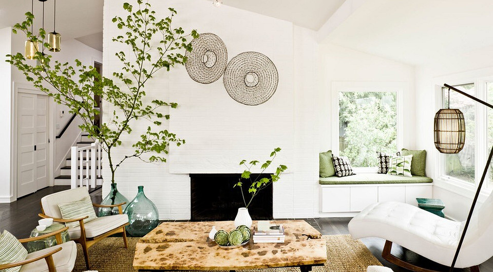 В проектах дизайнеров мы находим и такие интересные решения — когда крупные ветки деревьев украшают интерьер в специальных сосудах с водой.